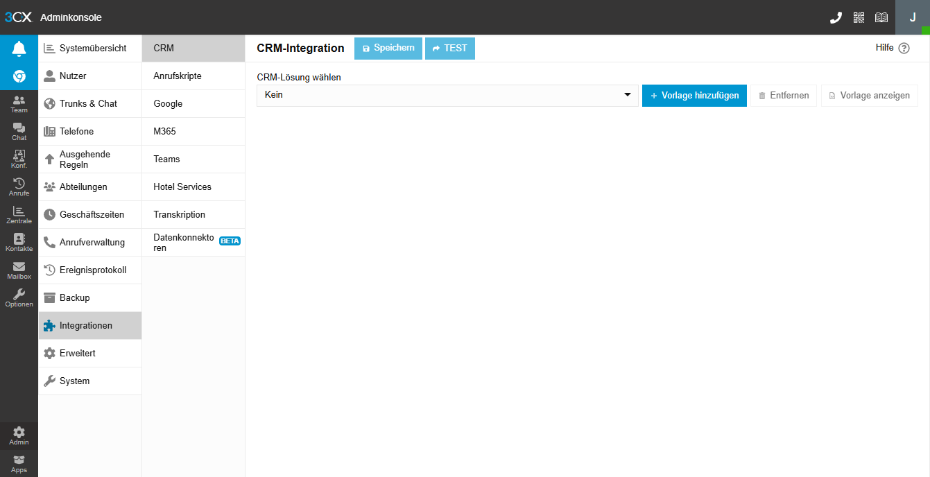 Um ein CRM-System in die 3CX-Telefonanlage zu integrieren, öffnen Sie das 3CX-Verwaltungskonsolen-Dashboard.