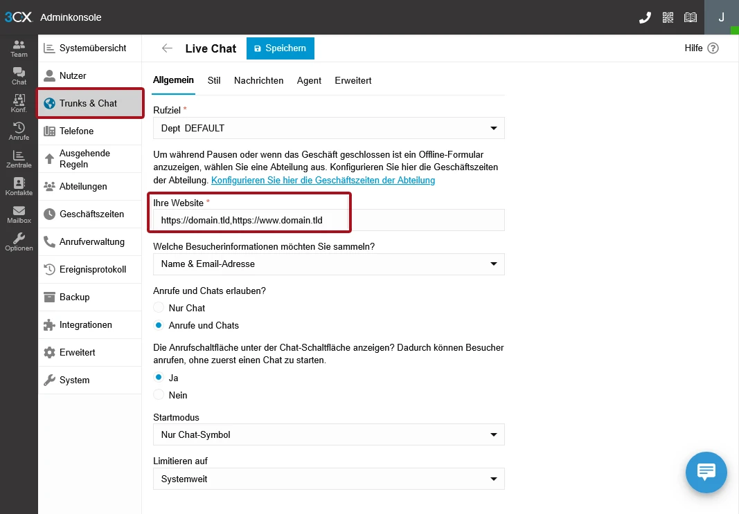 3CX Live Chat - URL korrekt eintragen